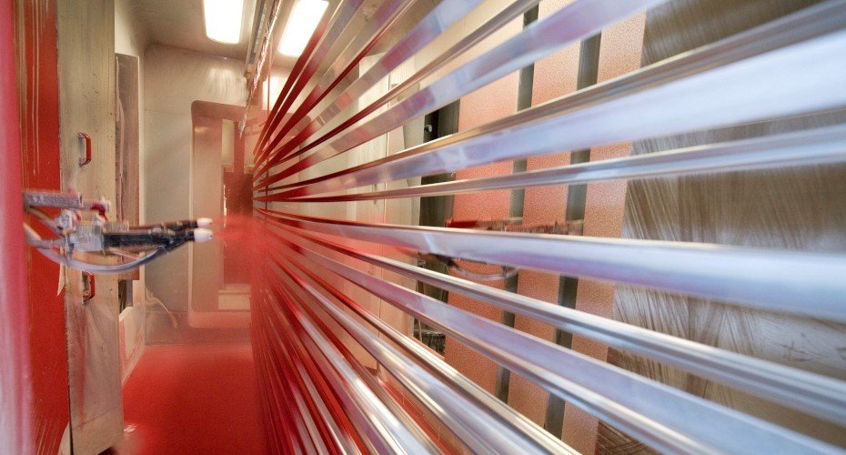 • The Conveyorised camel type oven allows uniformity in baking of powder on Aluminium sections.